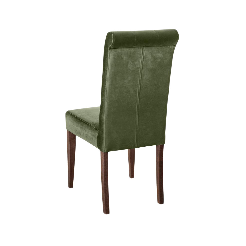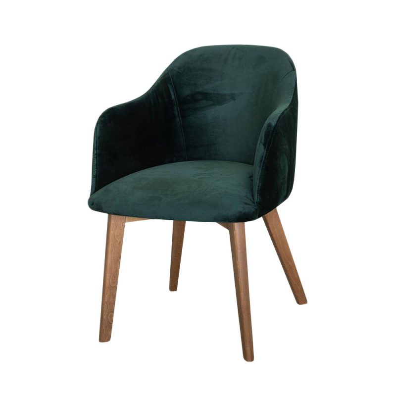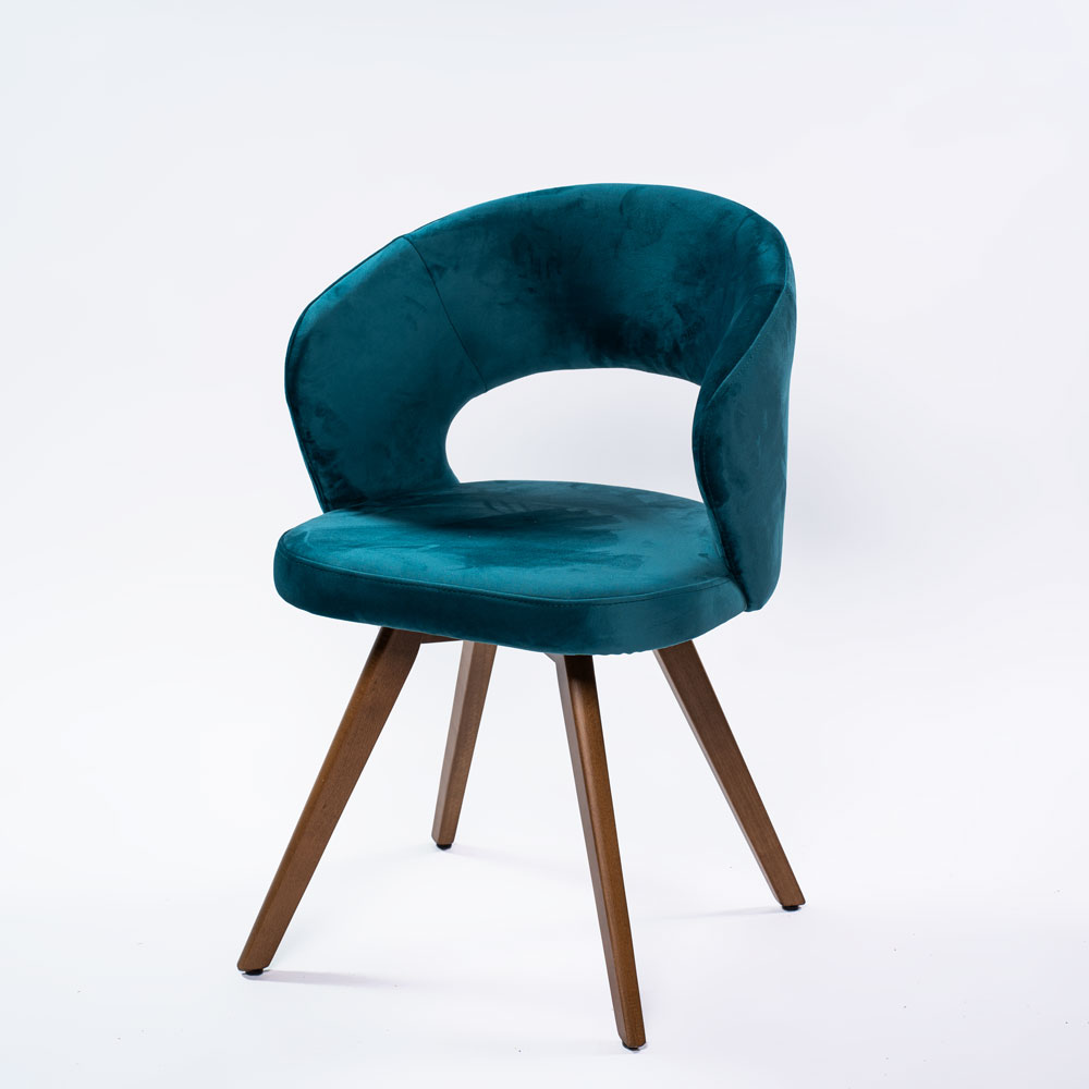 - Schienale e braccioli a forma di arco, rivestiti in velluto per un’eleganza ergonomica.