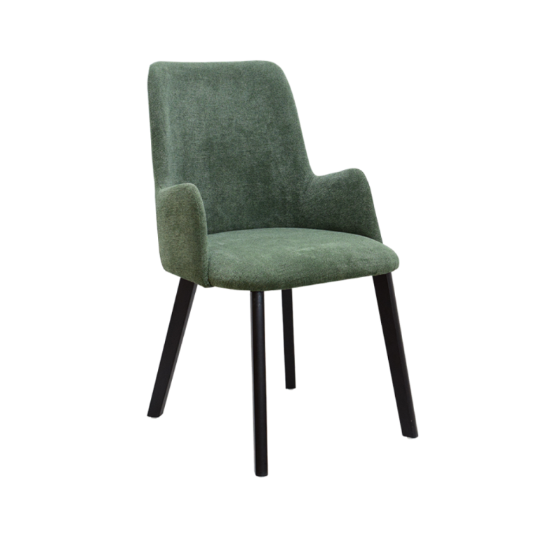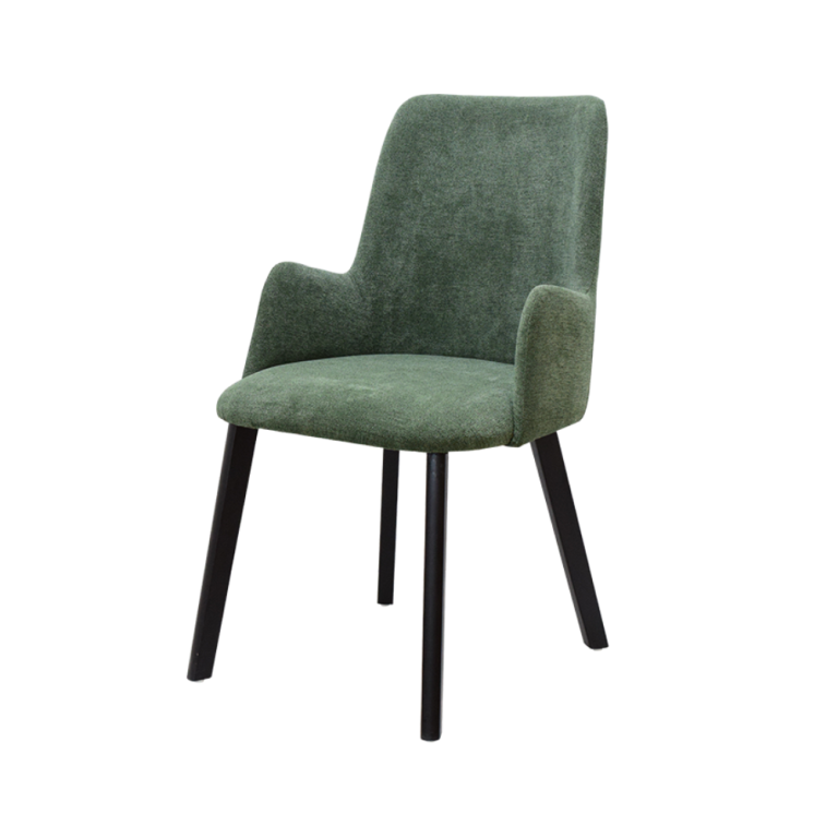 - Schienale e braccioli a forma di arco, rivestiti in velluto per un’eleganza ergonomica.