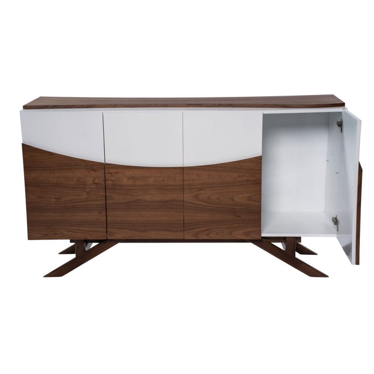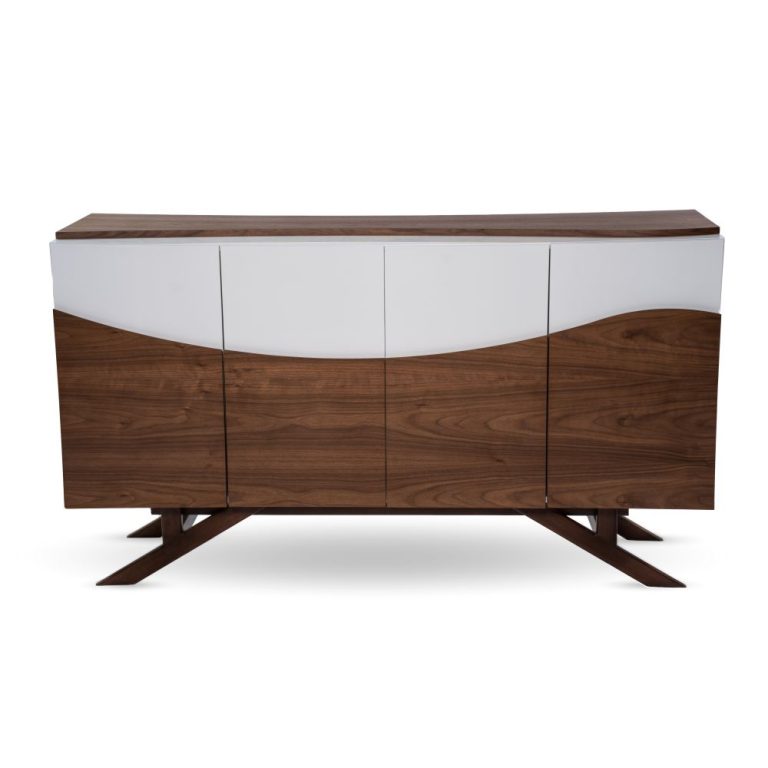 - Finitura bianca lucida con dettagli ondulati in legno.
