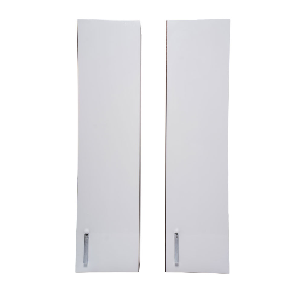 - Finitura bianca lucida con dettagli ondulati in legno.