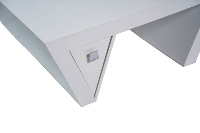 Both sections include detailed side drawers: one is triangle-shaped, and the other is rectangular, combining functionality with sophisticated design.