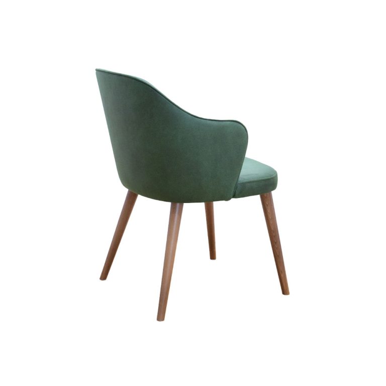 - Schienale e braccioli a forma di arco, rivestiti in velluto per un’eleganza ergonomica.