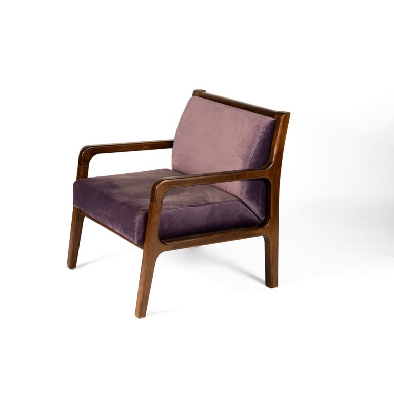- Schienale e braccioli a forma di arco, rivestiti in velluto per un’eleganza ergonomica.