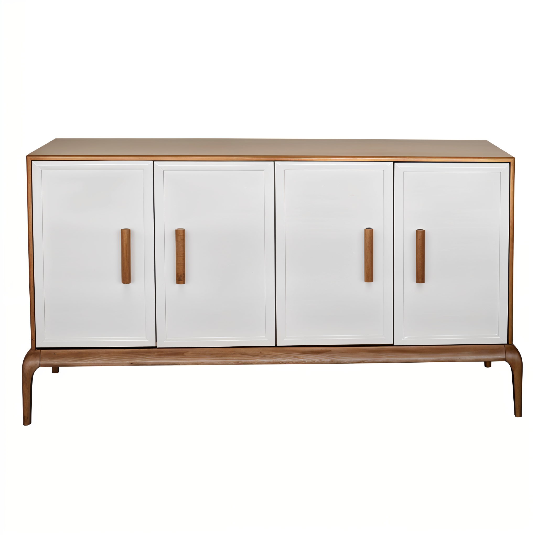 - Finitura bianca lucida con dettagli ondulati in legno.