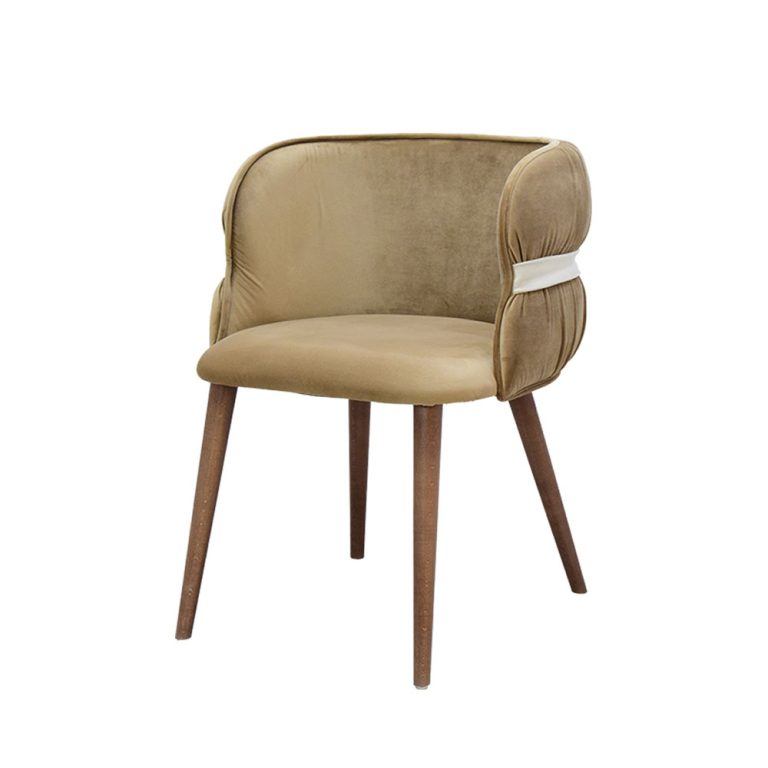 - Schienale e braccioli a forma di arco, rivestiti in velluto per un’eleganza ergonomica.