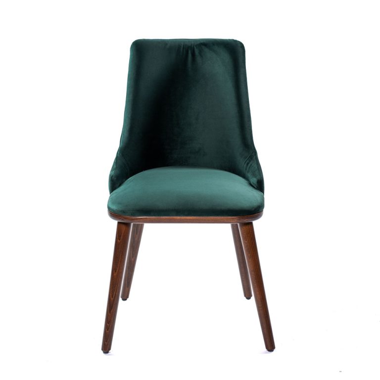 - Schienale e braccioli a forma di arco, rivestiti in velluto per un’eleganza ergonomica.